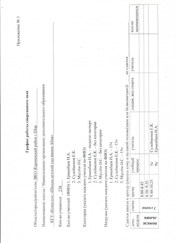 Спорт секциясының кестесі 2021-2022 оқу жылы » "Абай атындағы мектеп-балабақша кешені" КММ