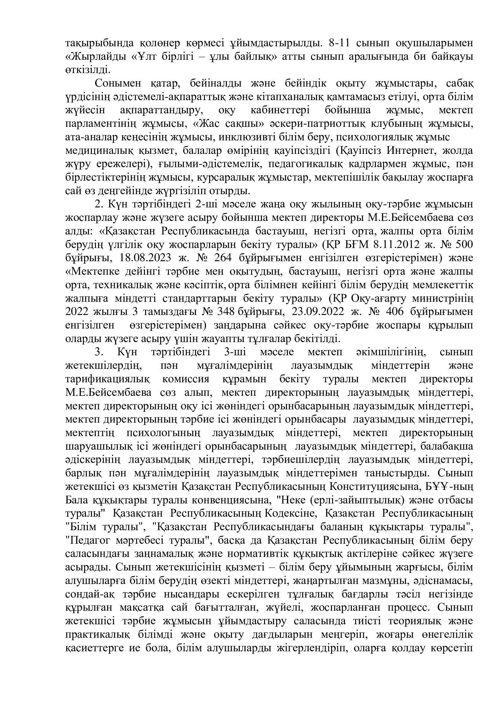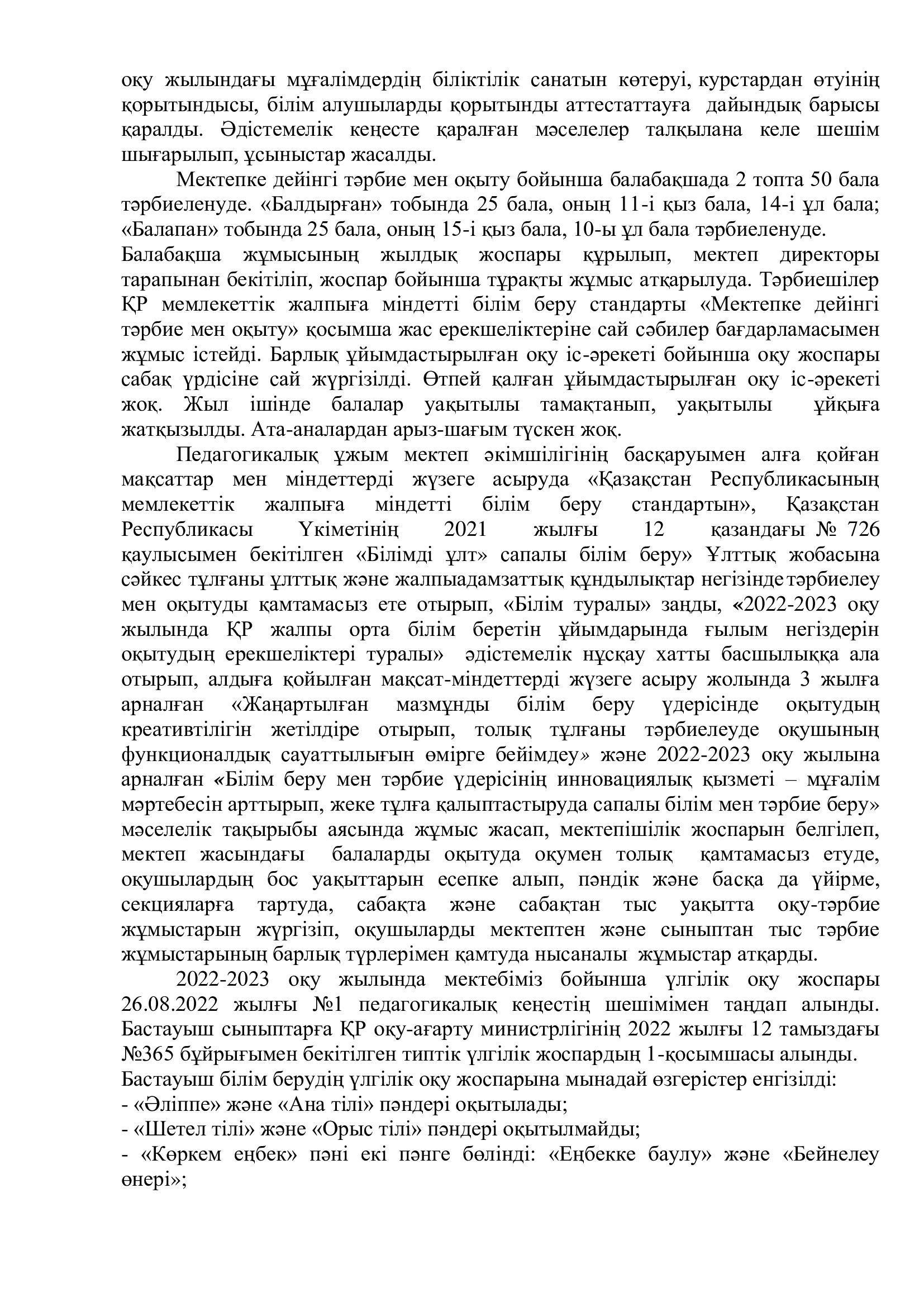 Педагогикалық кеңес хаттамасы №1 » "Абай атындағы мектеп-балабақша кешені" КММ
