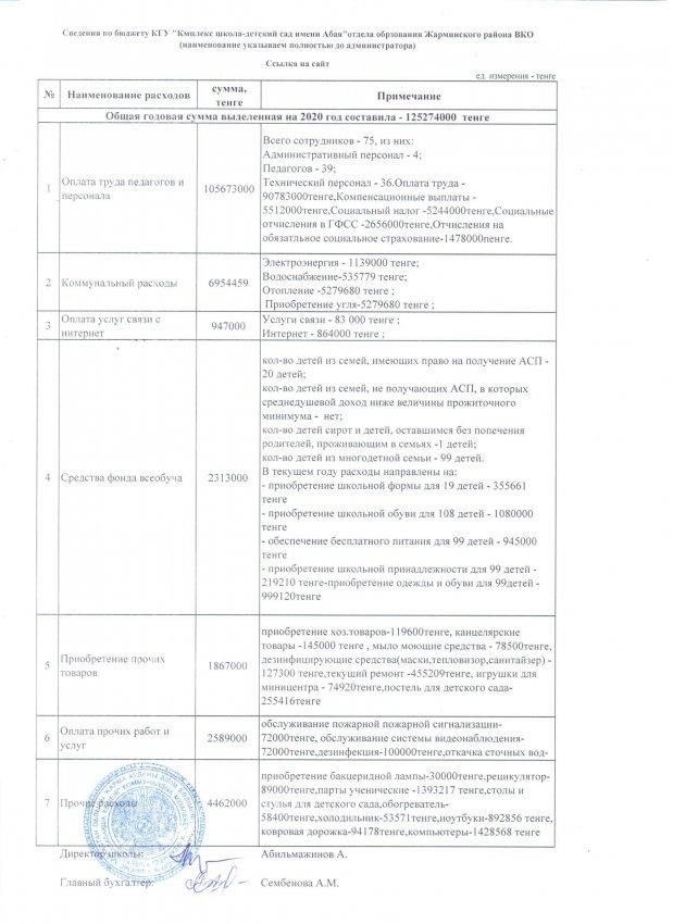 03 декабрь 2020 0 1 2 3 4 5 Сведения по бюджету КГУ "Кмплекс школа-детский сад имени Абая"отдела обрзования Жарминского района ВКО