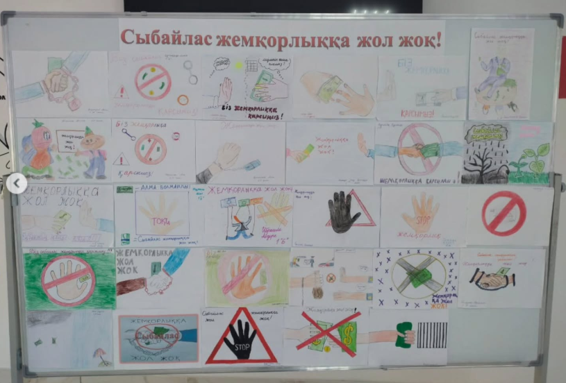 Мектебімізде 14 желтоқсан күні бастауыш сынып мұғалімі Ш.С.Самарханова, мектеп тәлімгері А.Ө.Рамазанның ұйымдастыруымен «"Сыбайлас жемқорлыққа жол жоқ" тақырыбында сурет көрмесі өтті. Мақсаты – балалар арасында сыбайлас жемқорлыққа қарсы мәдениетті қалыптастыру, олардың әділдік пен адалдыққа деген көзқарастарын нығайту, сондай-ақ шығармашылық арқылы өз ойларын еркін жеткізуге мүмкіндік беру. Көрме арқылы балалар сыбайлас жемқорлықтың қоғамға тигізетін зияны туралы ақпарат алып, бұл мәселеге қарсы тұрудың маңыздылығын түсінеді. Сонымен қатар, көрме жас ұрпақты заңға бағыну мен әділеттілік құндылықтарына тәрбиелеуге, олардың азаматтық жауапкершілігін арттыруға бағытталған.
