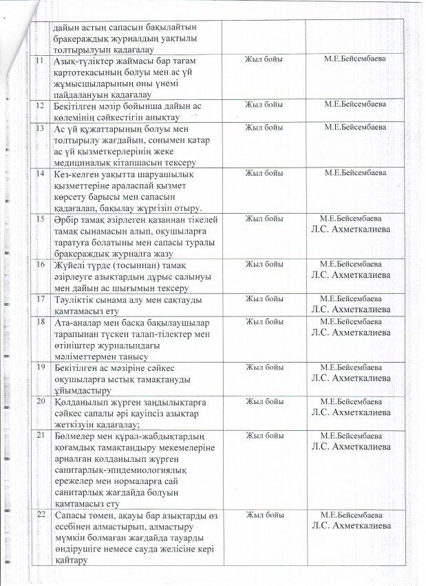 » » Тегін ыстық тамақпен қамтамасыз ету бойынша жылдық жұмыс жоспары