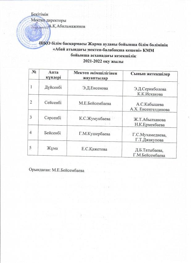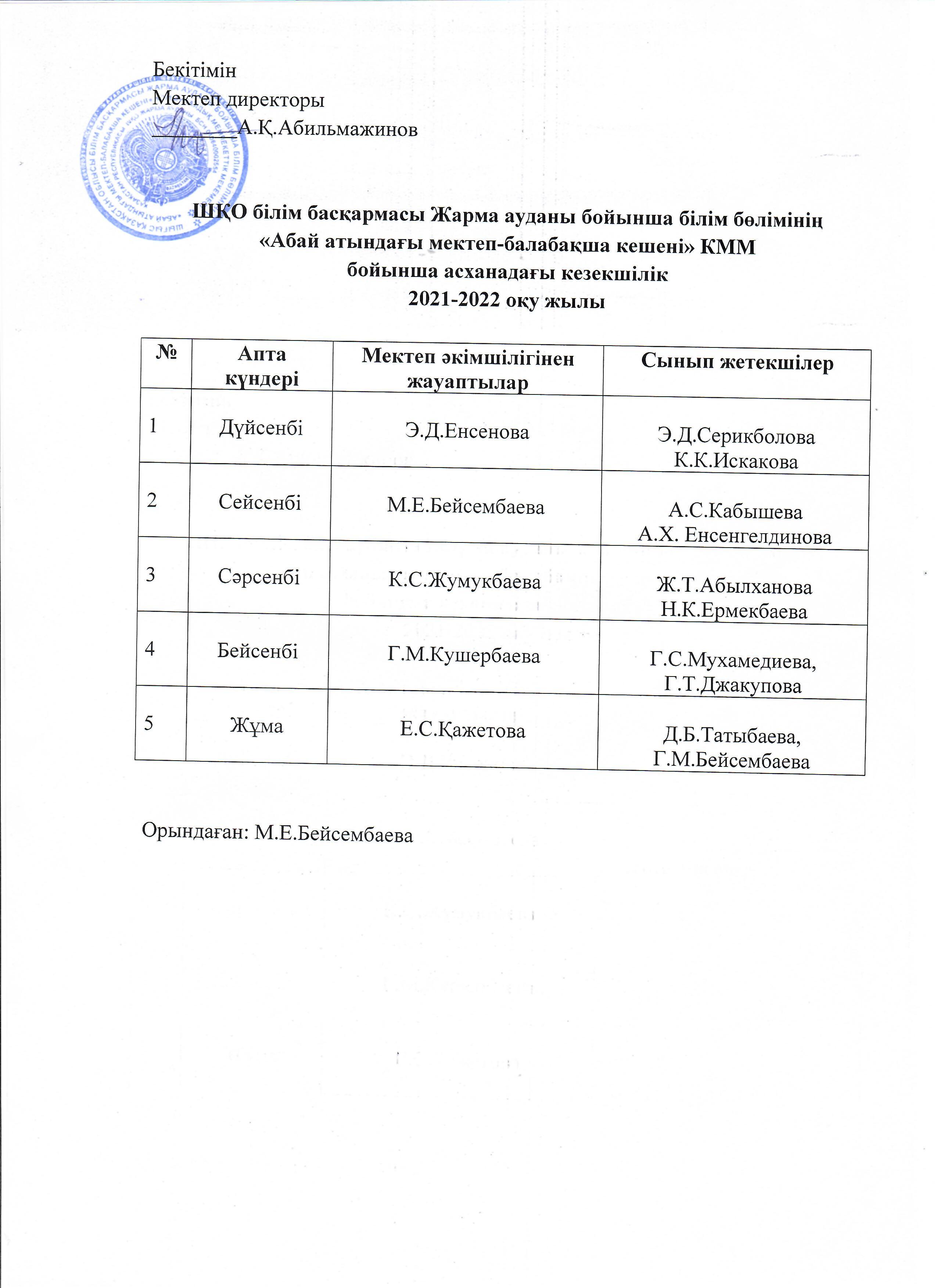 Асханадағы кезекшілік » "Абай атындағы мектеп-балабақша кешені" КММ
