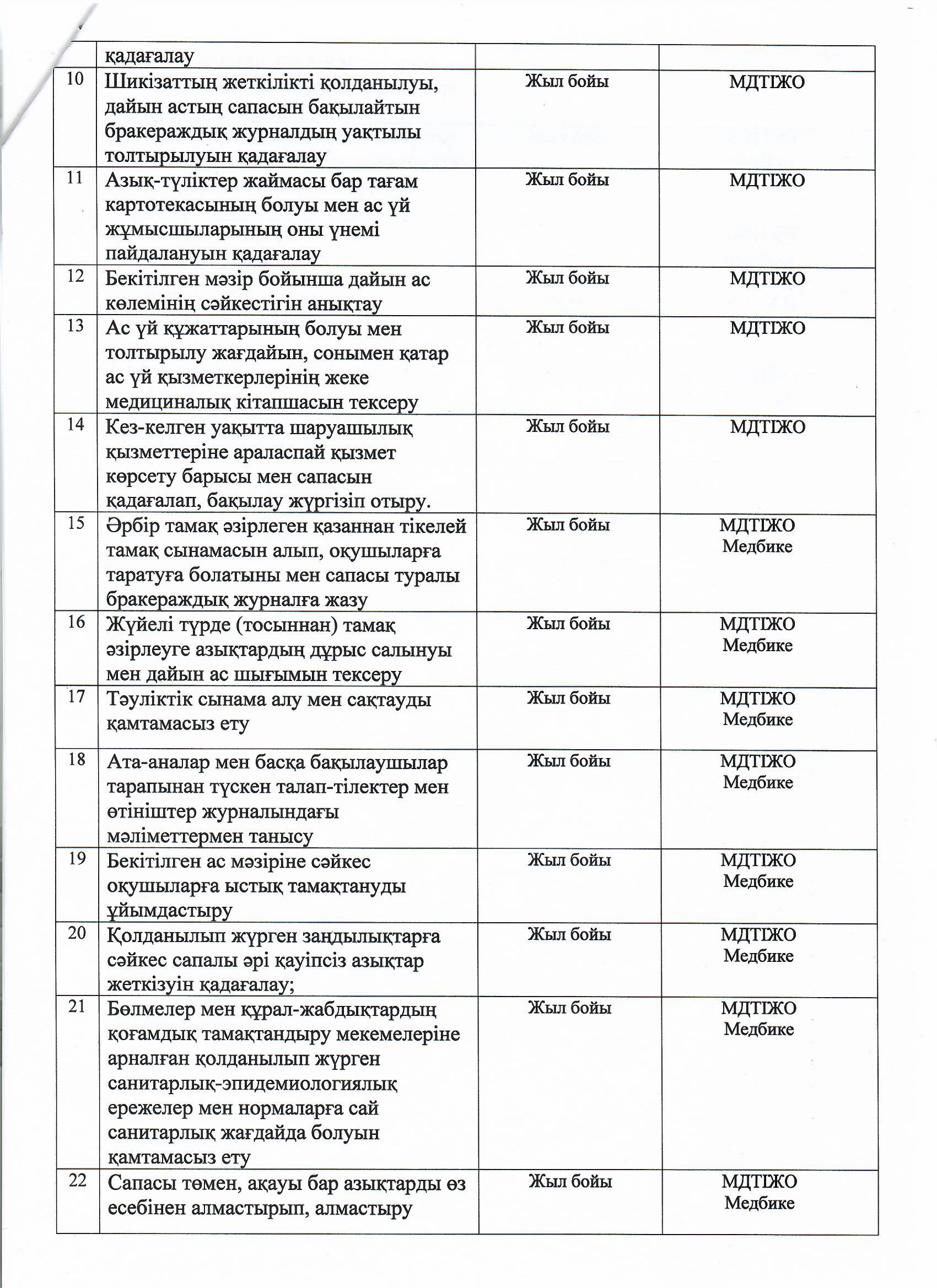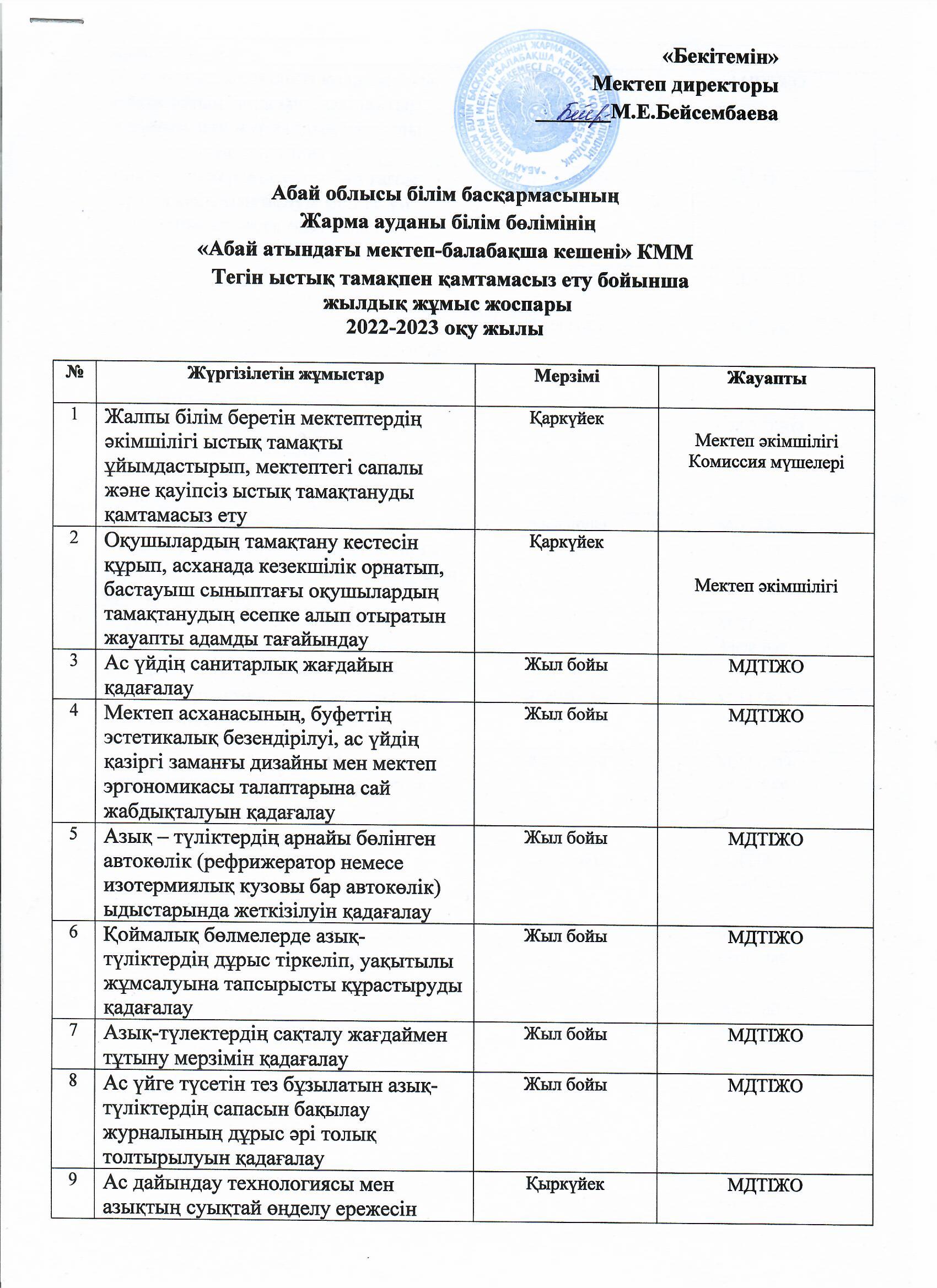01 октябрь 2022 0 1 2 3 4 5 Тегін ыстық тамақпен қамтамасыз ету бойынша жылдық жұмыс жоспар 2022-2023 оқу жылы