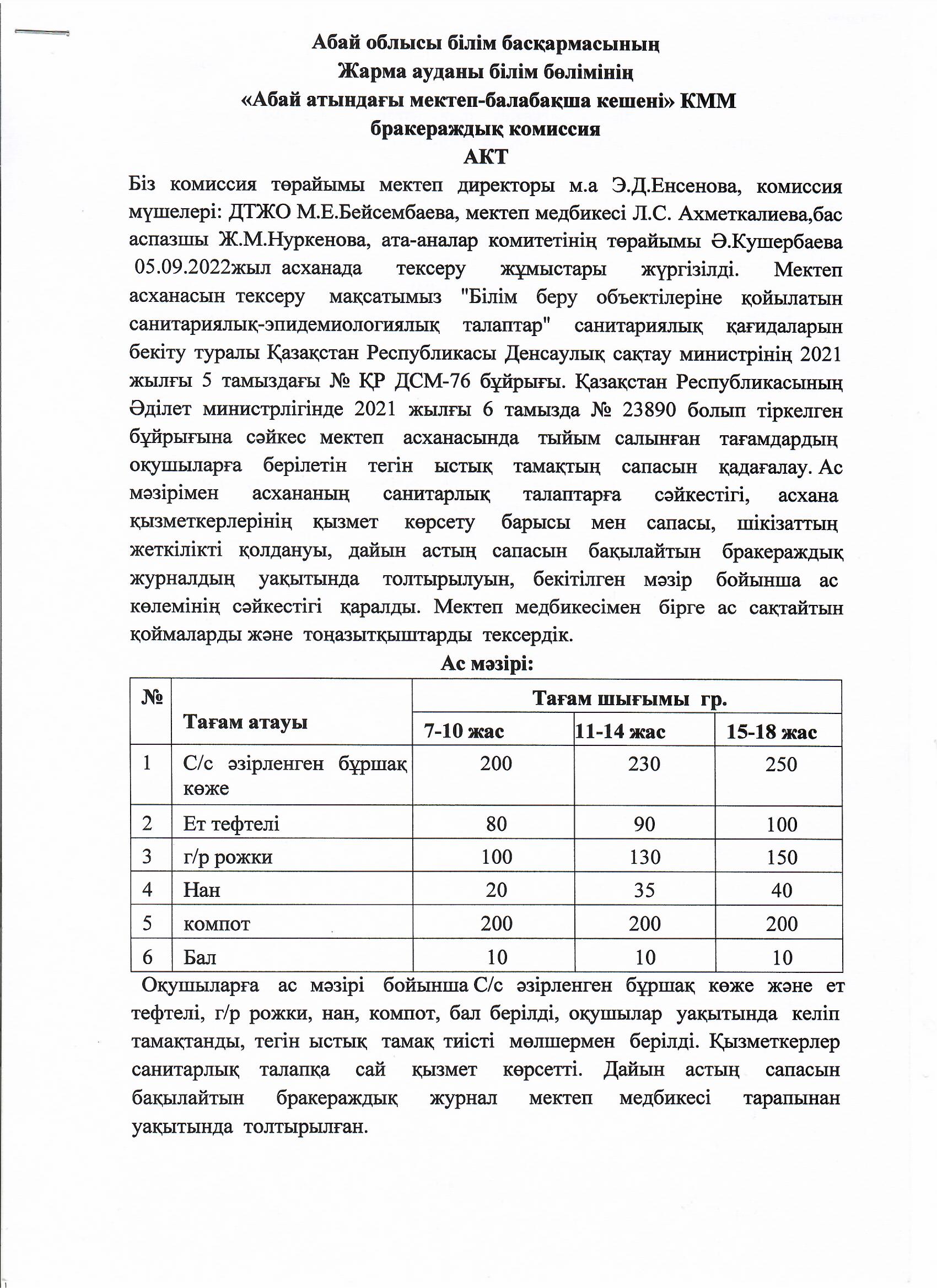 Бракераждық комиссия АКТ 2022-2023 оқу жыл » "Абай атындағы мектеп-балабақша кешені" КММ