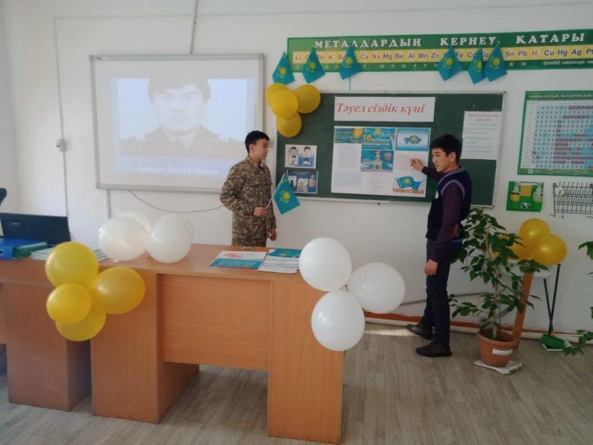 11.12.2019 жылы Мектебімізде 9-11 сыныптар аралығында «Тәуелсіздік, тұрақтылық – ел бірлігінің кепілі » атты дөңгелек үстел өтізілді. Оқушылар ат салыса қатысып әркім өз ойын ақтарды. Бірінші кезекте «Желтоқсан құрбандары» тақырыбына бейне таспа қосылып, слайд көрсетілді. Оқушылар алған әсерлерімен бөлісіп, желтоқсан құрбандарына жекелей тоқталды. Әр сынып тақырыпқа сай өлең жолдарын оқыды. Желтоқсан құрбандарына арнап көрме ұйымдастырылды. Соңында оқушыларды топқа бөліп «Гүлдене бер-Қазақстаным!» тақырыбына шығармашылық жұмыс берілді. Оқушылар қызығушылықпен орындады.