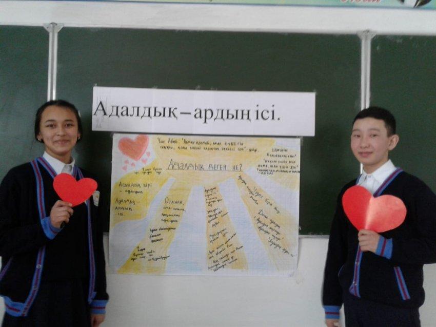 2020 жылдың 17 қаңтарда яғни бүгін Абай атындағы мектеп-балабақша кешенінде жалпыреспубликалық «Адалдық сағаттары» өткізілді. Іс-шараның мақсаты – өскелең жас ұрпақтың бойында адалдық, парасаттылық, әділдік, сенім құндылықтарын сіңіруге және жас буынның рухани болмысын бекітіп, сыбайлас жемқорлыққа қарсы мәдениетін қалыптастыру. Аталған іс-шараға "Шар қаласы әкімінің аппараты" ММ бас маманы Хайруллинова Марзия Сайфуллиновна және Шар қ. ПБ ЖПБ УПИ полиция аға лейтенанты Амергазин Думан Монарбекұлы қатысты. Олар өздерінің өмірлік тәжірибесімен бөлісіп, тыңдаушы өскелең ұрпақ арасында парасаттылық мәдениетін қалыптастыру қағидалары туралы, адалдықтың маңыздылығы туралы, қоғамның рухани-адамгершілік құндылықтары айтып берді. Жастар – еліміздің бәсекеге қабілеттілігінің басты факторы. Сондықтан жас ұрпақ білім нәрінен бөлек, адалдық, парасаттылық, әділдік және сенім қағидаттарын бойына сіңіруі тиіс.