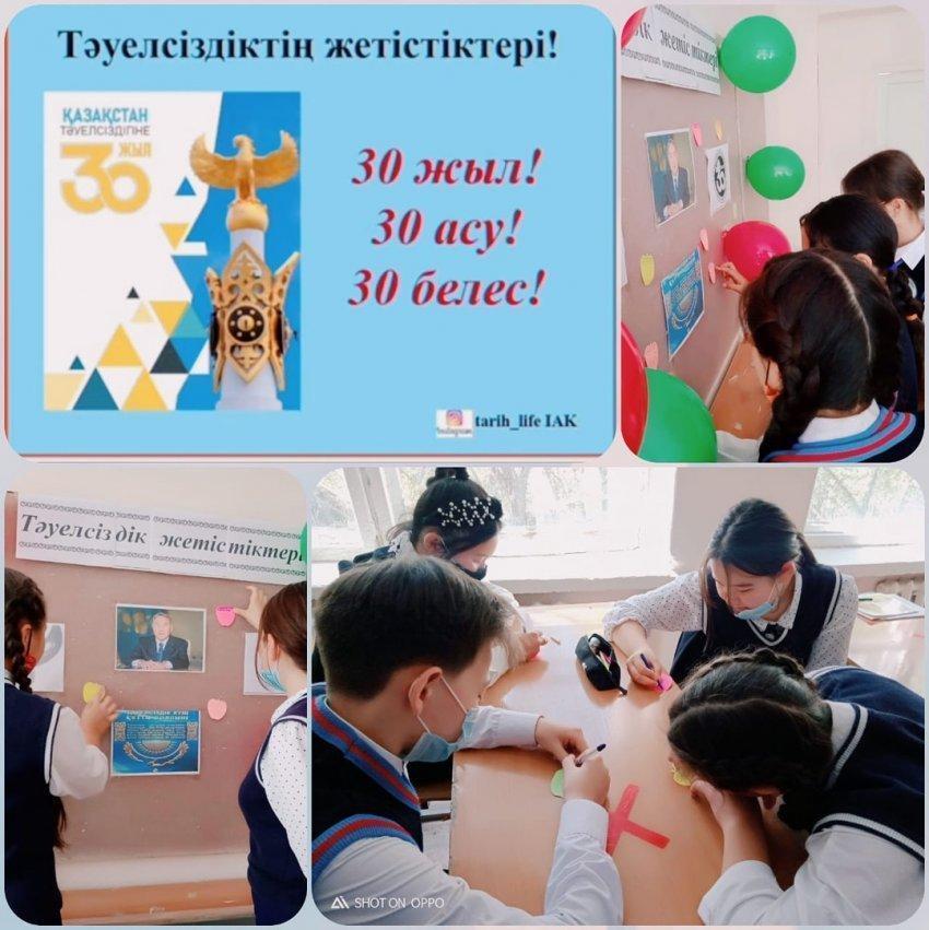 Мектебімізде ағымдағы жылдың 14 қыркүйегінде "Тәуелсіздік жетістіктері" тақырыбында 1-11 сынып оқушыларының қатысуымен ашық сабақ өткізілді. Ашық сабақта Тәуелсіздік жылдарындағы мемлекеттік құрылы-